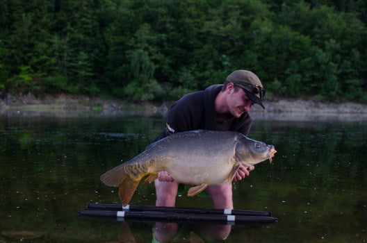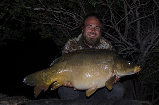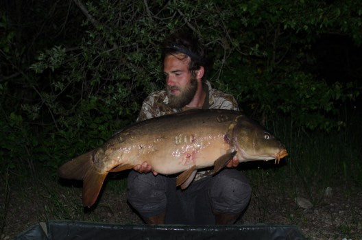 Tief in der Nacht bemerkte ich durch die offene Schiebetür Aktion an einer von Bruno’s Ruten. Kurze Zeit später bewegte ich mich aus meinem Bett um den ersten Karpfen seiner Tour abzulichten, und dann direkt eine richtige Beauty. Ich freute mich für ihn, wenn ich ihm in den letzten Tagen schon nicht in bester körperlicher Verfassung und guter Laune Gesellschaft leisten konnte.