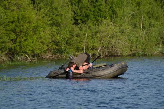 Der nächste Tag war einer der wärmsten Tage des Jahres für mich und ich verbrachte diesen in der Sonne schmelzenden vor dem Laptop. Nicht unbedingt das beste Wetter für das erfolgreiche Angeln, daher vertrieben wir uns unter anderem die Zeit mit Baden und dem gezielten Ablegen unserer Montagen im Tauchgang. Genauer geht es nicht- also präsentierten wir die meisten Montagen von Hand abgelegt an interessante Spots.