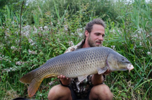 In der prallen Mittagssonne pumpte ich das Boot auf und begab mich kurze Zeit später aufs Wasser. Mein Echolot zeigte mir eine Maximaltiefe von einem Meter. Ich musste etwas schmunzeln, durch meine vorherige Recherche wusste ich jedoch, dass der See nicht tiefer als zwei Meter war. Während des Aufbauens zeigten sich – trotz des heißen Ententeichwetters – immer wieder Fische. Bei der Spotsuche wurde mein erster Eindruck über die Fischdichte noch verstärkt, als sich überall Strudel aufgescheuchter Satzkarpfen neben dem Boot bildeten. Selten habe ich ein dermaßen hohes Aufkommen an Karpfen in einem so großen See gesehen. Das Gewässer vermittelte mir einen völlig unausgewogenen Fischbestand, der wahrscheinlich zu 80% aus halbstarken Karpfen bestand. Dennoch blieben in den kommenden drei Tagen die anfangs vermuteten Massenfänge von Karpfen der 2 Kilo Klasse aus. Dafür bildeten Wildkarpfen den Durchschnitt, die die 10kg Marke bei gefühlt einem Meter Länge nur schwer überschritten.