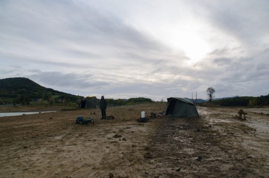 So vielversprechend wie es anfing, blieb es leider nicht. Ich konnte in den nachfolgenden Tagen noch einen schönen Spiegler fangen. Außer einigen Satzkarpfen passierte die meiste Zeit gar nichts. Das Wetter wurde immer unangenehmer: Es regnete die meiste Zeit, stürmte und die Tagestemperaturen fielen in den einstelligen Bereich. Eine Kombination die irgendwann an die Substanz ging und meine Stimmung immer tiefer sinken ließ. Alleine hätte ich mich schon längst in wärmere Regionen verzogen. Aber der Umstand zu zweit die unangenehme Zeit zu überbrücken machte es noch etwas erträglicher und ließ mich ausharren. In der Hoffnung noch einen guten Fisch abgreifen zu können.