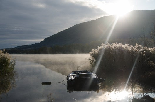 Es dauerte nicht lange und ich befand mich erneut mit meinem Boot auf dem See, diesmal jedoch in einem deutlich weniger windigen Seeteil. Zu meiner Verwunderung stellte ich bei der Spotsuche eine niedrigere Wassertemperatur als im vorherigen Bereich fest. Auch die Stellenwahl erwies sich als sehr kompliziert und ich fand kaum eine krautfreie Stelle. Ich legte aufgrund der vorgefundenen Gegebenheiten demotiviert drei Ruten mit der Gewissheit, am nächsten Tag erneut die Stelle zu wechseln. Die Nacht wurde kalt, der erste Frost zierte am Morgen das herbstlich-goldene Ufer, alles glitzerte – ein magischer Moment, auch ohne Fisch.