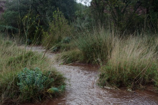 In Vorbereitung auf die Schlechtwetterfront schuf ich mir einen “Ablaufgraben”, der mein Zelt vor Überflutung schützen sollte.