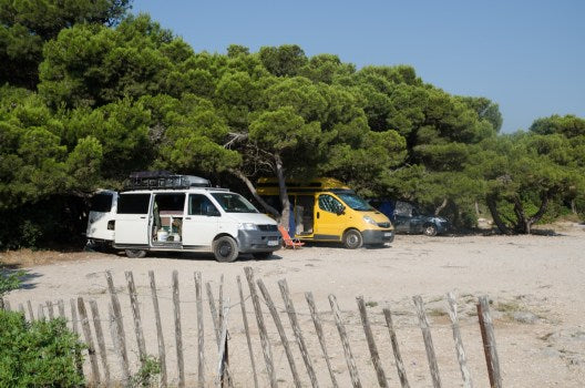 I'll keep it short: I simmered for 2 days in the blazing sun at 35 degrees, with no real shade and caught absolutely nothing. The weather was anything but promising and was not developing in that direction in any way, there was hardly a breeze and I could hardly see any fish action in the lake. After the second night I had enough and decided to continue driving to the sea. The plan changed so quickly and the outstanding bill was postponed to a possibly more suitable time. I would rather spend my time mobile and untethered, traveling around and visiting the beach - what could be better in this weather?! The Occitanie region is truly wonderful; it's worth a stay, especially just before the Spanish border at the foot of the Pyrenees, right on the Mediterranean. There I found beaches that weren't too overcrowded at the time, some opportunities to do sports there and parking spaces with a fantastic view of the sea.