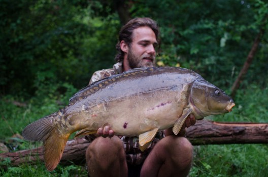 I sat under the starry sky for a long time on this mild evening and enjoyed the absolute peace of this place, until sometime after midnight I lay down on the lounger and was woken from my sleep early in the morning by a constant sound. A mirror landed in the landing net and I was satisfied that I was immediately successful on the new body of water despite the current heat period.