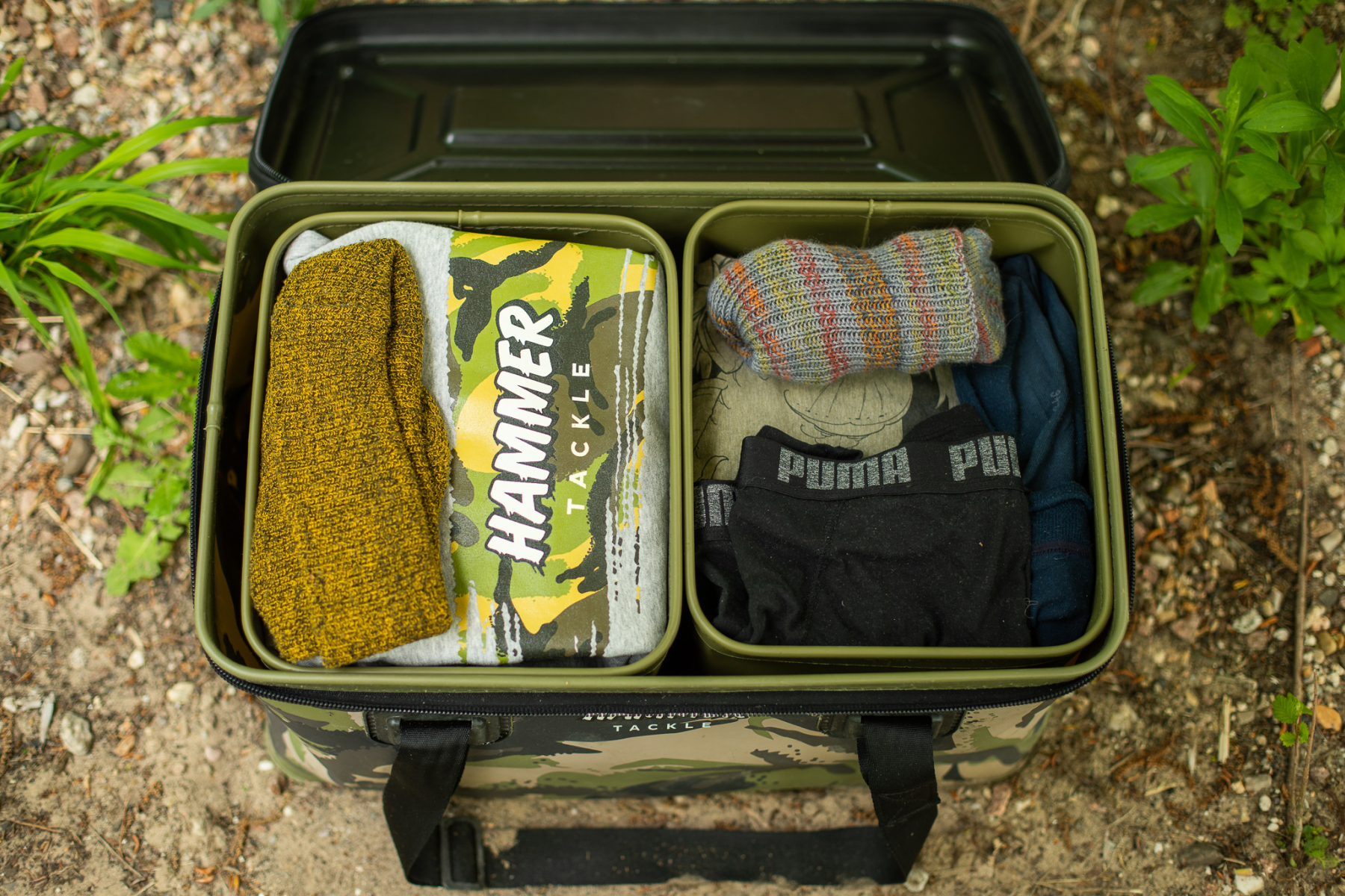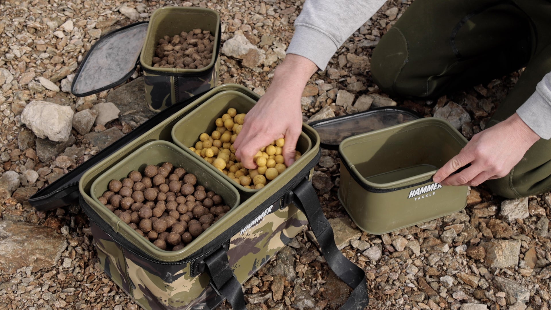 Um verschiedene Dinge ordentlich voneinander zu trennen verwende ich die Hammer Nizer. Ich benutze sie auch als Eimer, um mein Futter vorzubereiten oder um den Karpfen beim Fotografieren feucht zu halten.